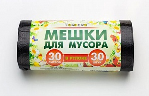 Мешки для мусора: 30л Ромашка ПНД, черные, 7мкм, 57,5*48см, 118гр, 30шт/рул, 30рул/уп